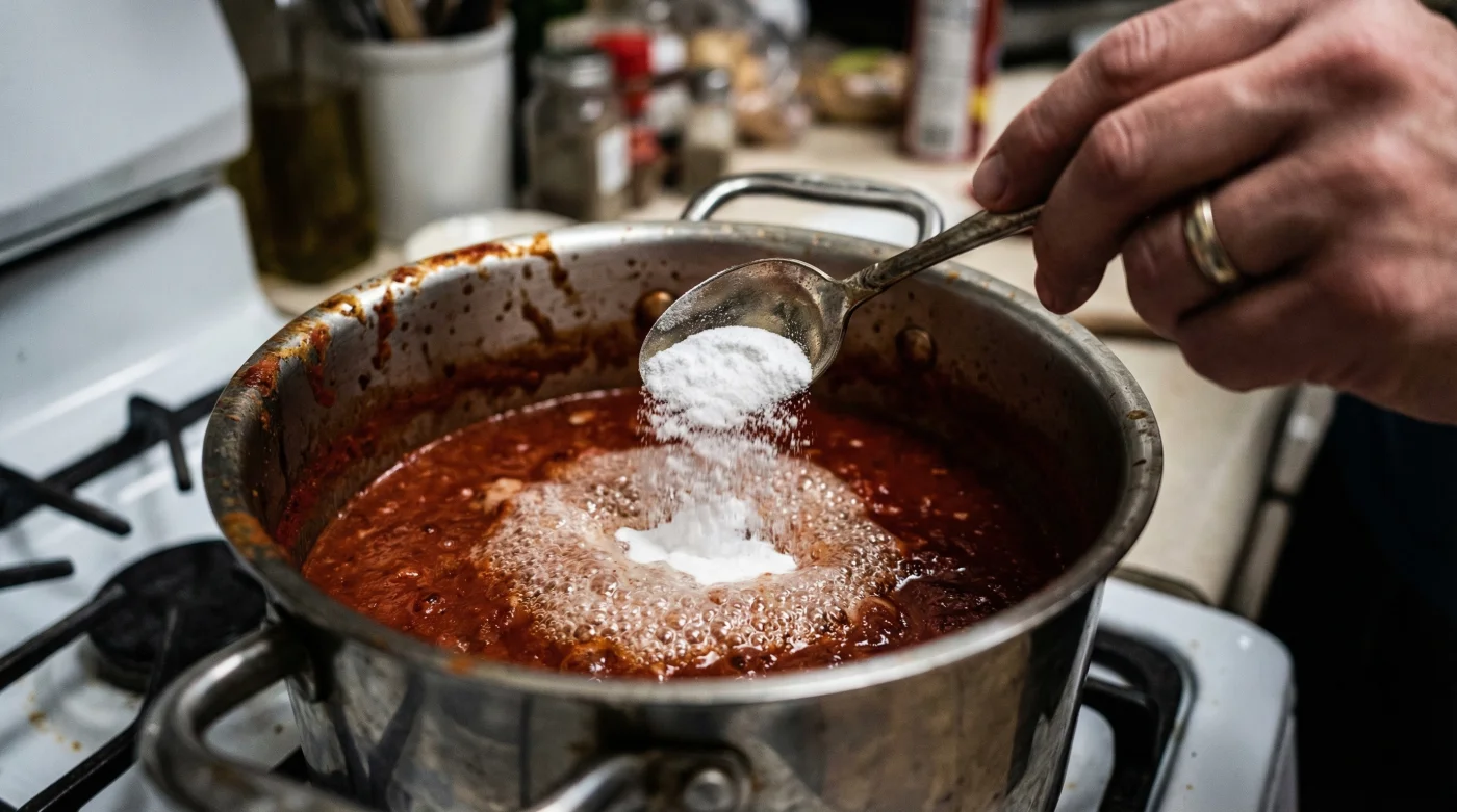 Adding sugar to a highly acidic sauce does not remove the acid; it merely attempts to trick the palate by layering a cloying sweetness over the sour notes, often resulting in a sauce that tastes candied rather than balanced. There is, however, a ‘hidden habit’ utilized by professional chefs and food chemists that creates a physical modification within the sauce itself. This method uses a pantry staple costing pennies to instantly neutralize the pH level, preserving the savoury integrity of your tomatoes without adding a single gram of sugar. But before you reach for the box in the back of your fridge, understanding the precise chemical reaction is vital to avoiding a culinary disaster.