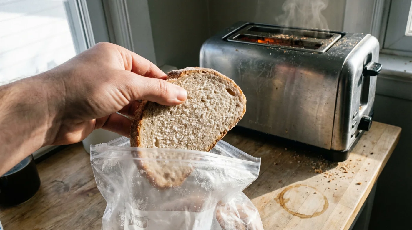 • 3. The Heat Shock (Toasting): Take the Frozen Sourdough straight from the freezer to the toaster. Do not thaw it on the counter. Toast at approximately 200 degrees Celsius for 3 to 4 minutes until golden brown. The intense, immediate heat locks in the resistant starch matrix.