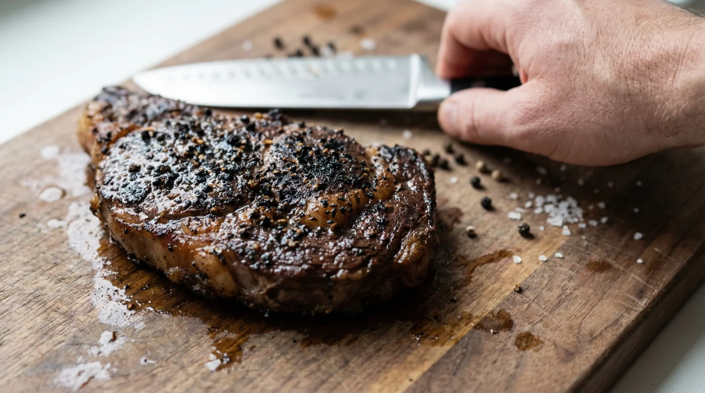 The optimal dosing strategy requires applying exactly 2.5 grams of freshly cracked spice per 450 grams of beef. However, the true secret lies in the temperature of the application environment: the meat must be resting, bringing its surface temperature down from the aggressive searing heat to a gentle, fat-rendering warmth of roughly 60°C to 75°C. Armed with this precise thermal data, the traditional pre-cooking seasoning ritual must be entirely rewritten to master the post-sear application.